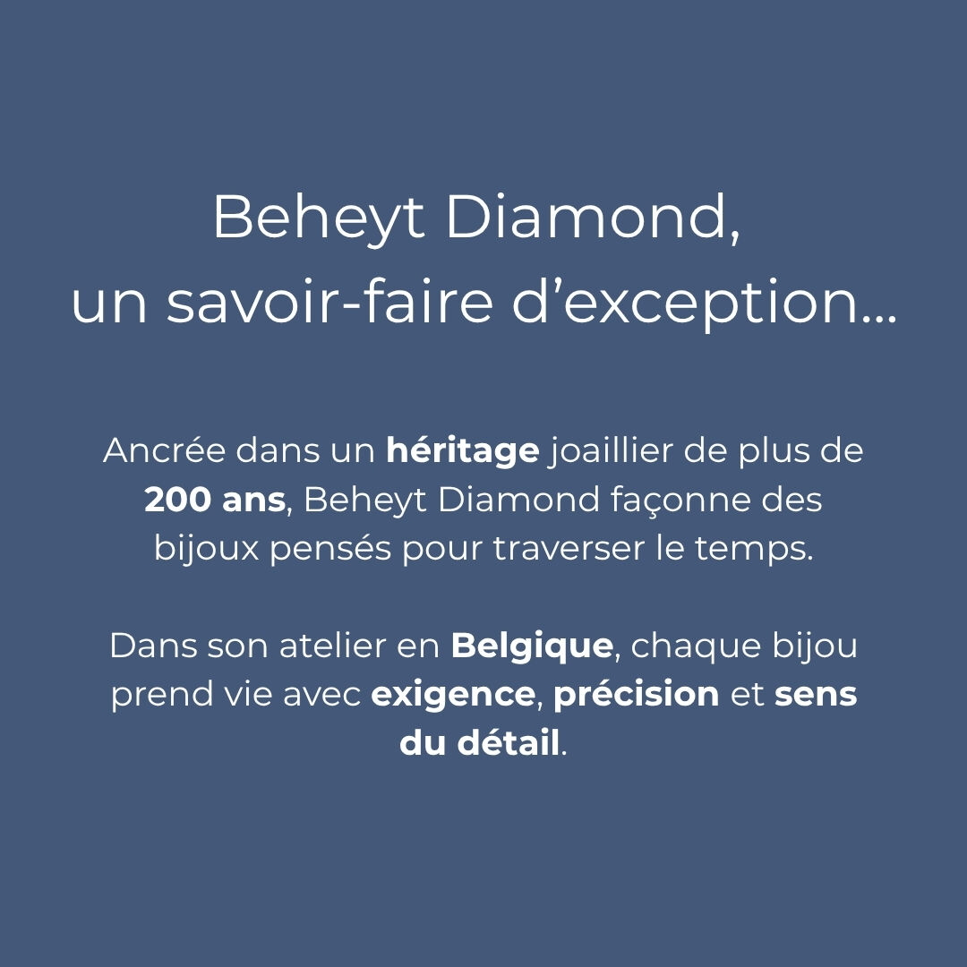 Certaines créations peuvent être personnalisées selon les possibilités proposées par Beheyt Diamond. En point de vente, nous vous aidons à exprimer votre besoin et à identifier les options adaptées.
