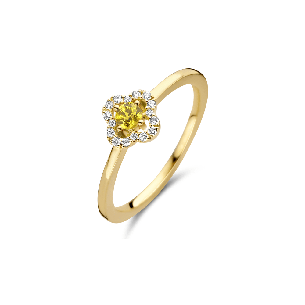 Salina ring in 18 Kt geel goud met gele saffier en diamanten