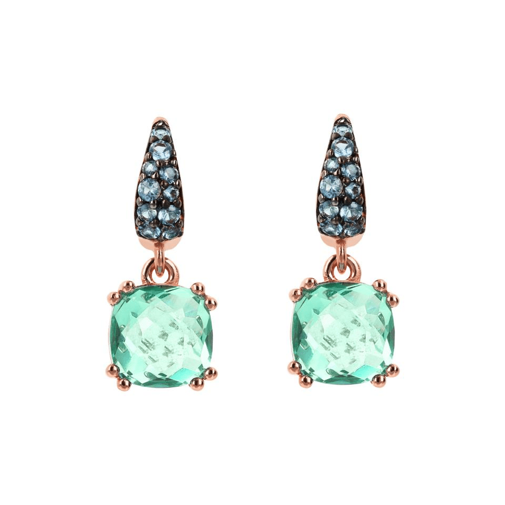 Boucles d'Oreilles - Bronzallure Earring With Cushion Random Cut Nanogem Stone&Pavè WSBZ02182.GREEN