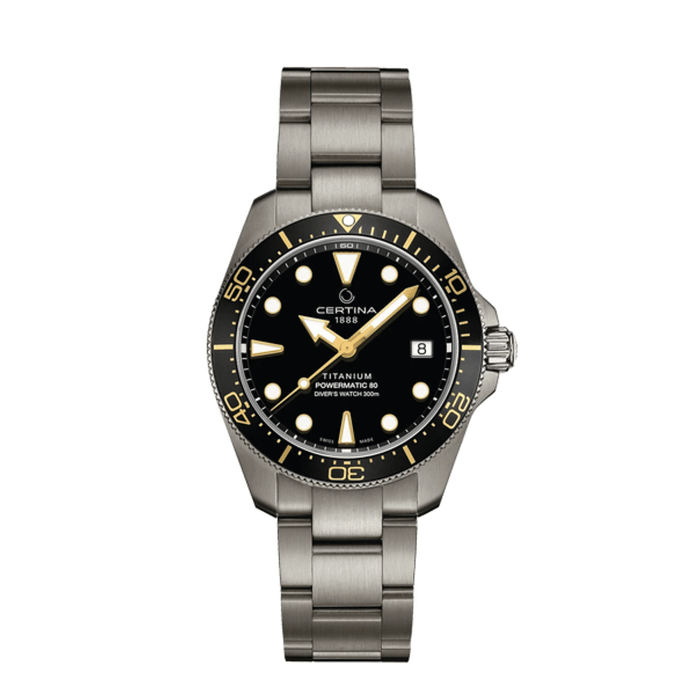 Certina DS Action Diver Titane 38Mm, Bracelet Titane Gris, Cadran Noir, 30Atm, Powermatic 80 C0488074405100