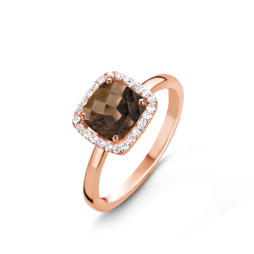 Etna Ring In 18 Karaat Rosé Goud Met Rookkwarts 1.475ct En 25 Natuur Diamanten Briljant Slijpsel 0.10ct VS F-G