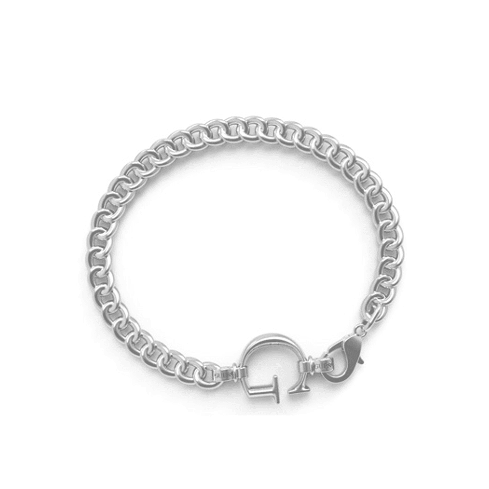 Armband in gerodineerd staal met grote schakels, versierd met een G-logo charm. De armband is verstelbaar van 15 tot 18 cm en heeft een karabijnsluiting.