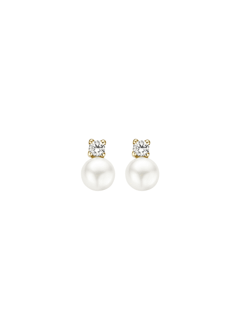 Blush Oorbellen 14 Karaat Geel Goud Met Parel en Zirkonia