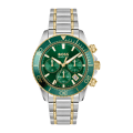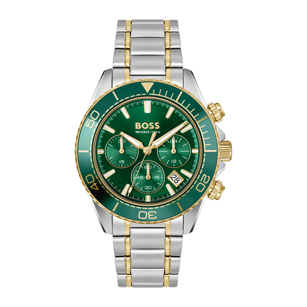 Boss Black Chrono Horloge, Tweekleurige Stalen Band, Groene Wijzerplaat, Stalen Kast, Datum, 44Mm, 10 Atm