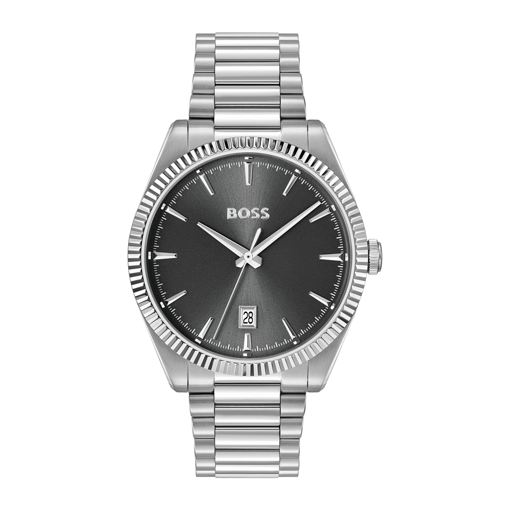 - **NOT FOUND** key: product.notifyMeModalProduct Boss Black Horloge, Zilverkleurige Stalen Band, Zwarte Wijzerplaat, Stalen Kast, Datum, 40Mm, 5 Atm, 1514310