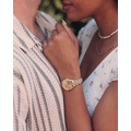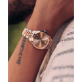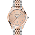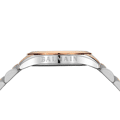 Aangedreven door een Zwitsers quartz uurwerk (Kaliber ETA F05.115), garandeert dit horloge precisie en betrouwbaarheid. De bijpassende band, ook tweekleurig staal en roségoud PVD, sluit met een vlindersluiting met drukknoppen.