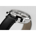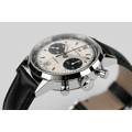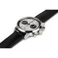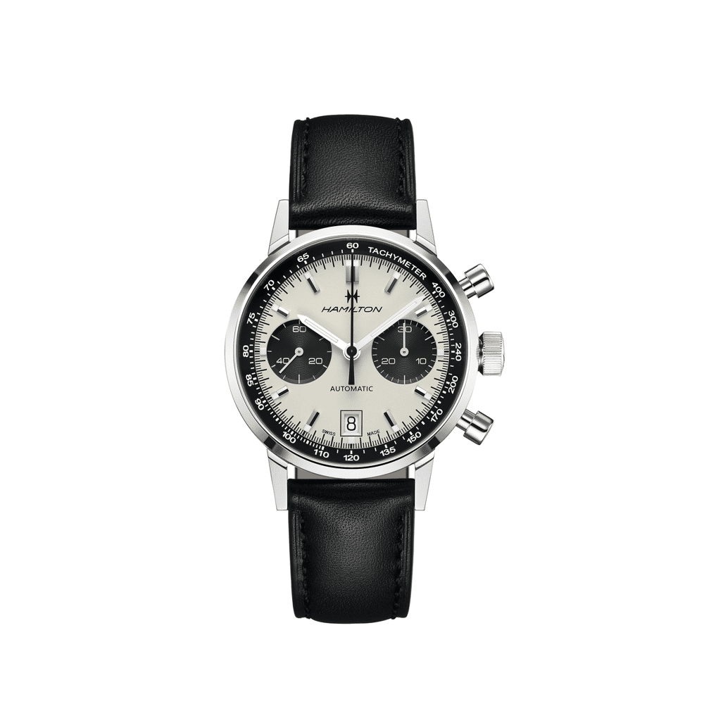 Deze Hamilton American Classic Intra-Matic Auto Chrono heeft tegelijkertijd een sportieve als een klassieke uitstraling. Dit model is een moderne heruitgave van een iconisch model uit 1968. De sfeer van de sixties wordt gecombineerd met het ultramodern en performant Hamilton automatisch gangwerk H-31 van topkwaliteit dat excelleert in de eisen van de meest sportieve horloges. Dit topkaliber heeft 27 jewels, een gangreserve van 60 uren en de stopwatch chronometreert maximum 30 minuten. De prachtig gepolijste horlogekast en het schroefdeksel zijn uiteraard vervaardigd van het beste soort roestvrij staal. De lichtgevende wijzers en indexen zijn gemonteerd op een witte-zwarte panda wijzerplaat met aanduiding van de datum op de 6 uur positie en een tachymeter in de binnenrand. Het geheel wordt afgewerkt met een krasbestendig saffier glas. De zwarte lederen band is gesneden uit de beste kwaliteit kalfshuid. Deze uitzonderlijke Swiss-made heren chronograaf met een waterdichtheid van 10 bar (zwemmen) wordt geleverd in de originele Hamilton verpakking en geniet van 2 jaar internationale garantie.