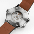 Gemonteerd op een elegante bruine leren band met een gesp, en waterbestendig tot 10 bar (100 m), is dit horloge de perfecte partner voor diegenen die de avonturen van het leven met precisie en flair durven te navigeren.