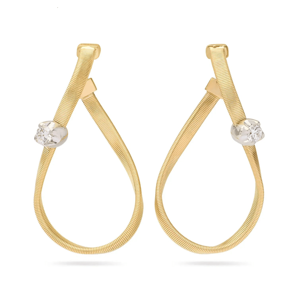 Marco Bicego 18 Karaat Geel En Wit Goud Oorbellen Coil Techniek Handgemaakt Met 2 Natuur Diamanten Briljant Slijpsel 0.16ct