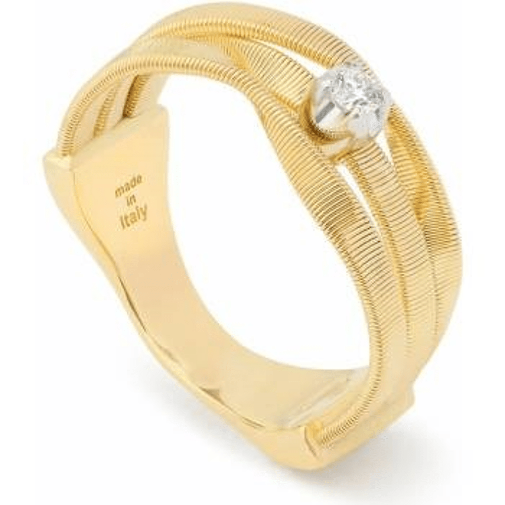 Marco Bicego 18 Karaat Geel En Wit Gouden Marrakech Ring Coil Techniek Handgemaakt Met Natuur Diamant Briljant Slijpsel 0.08ct