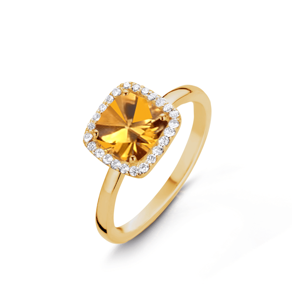 Verlovingsring - One More Etna Verlovingsring In 18 Karaat Geel Goud 050596/KA Met Oranje Citrien 1.635ct En 25 Natuur Diamanten Briljant Slijpsel 0.10ct VS F-G