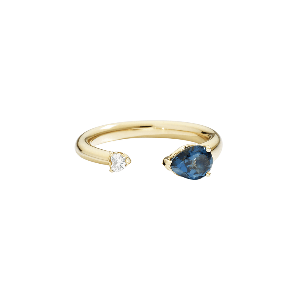 Recarlo Anniversary More Collectie Ring Met London Blue Topaas In Peervorm 0.80ct en Natuur Diamant Hartvorm Slijpsel 0.07ct F VS