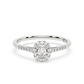 Solitaire Oval Diamond Entourage Ring 4 Prongs In White Gold 14kt, 0,32ct