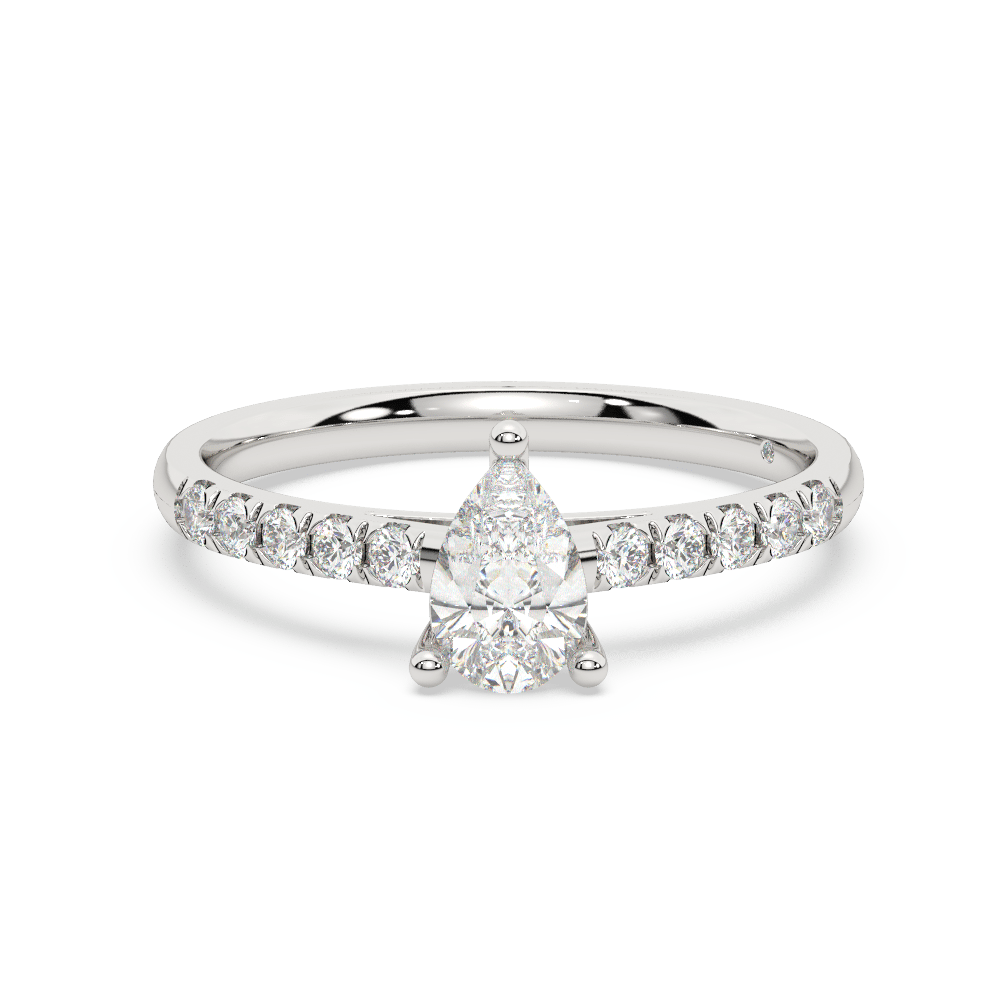 Solitaire Pear Diamond Ring 3 Prongs, Side Diamonds Settings In White Gold 14kt, 0,53ct