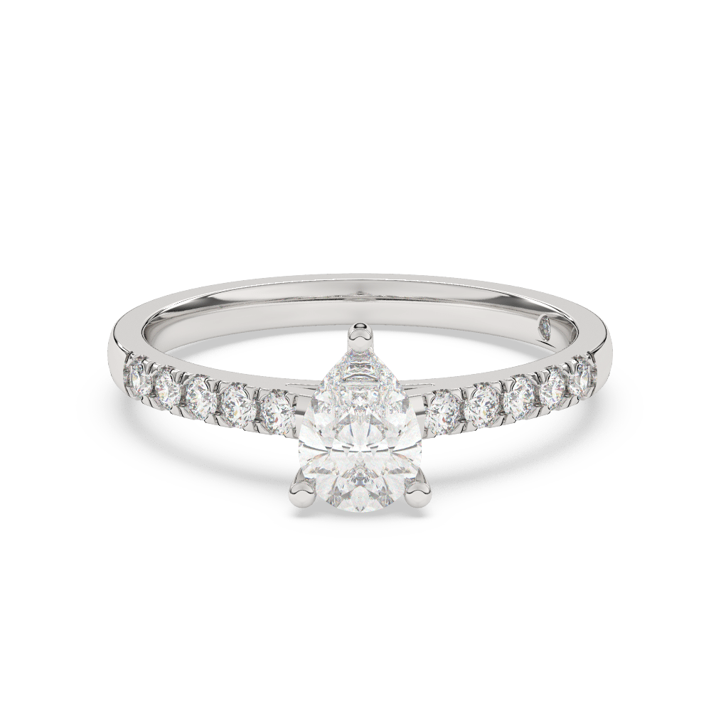 Solitaire Pear Diamond Ring 3 Prongs, Side Diamonds Settings In White Gold 14kt, 0,75ct