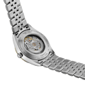 De Tissot horloge Ballade 39mm heeft een zilver wijzerplaat en een bicolor band. Hij is aangedreven door het Powermatic 80‑binnenwerk, met een kast rond de 39 mm, waterdicht tot 10 ATM (100 m). De band sluit met een vlindersluiting met drukknoppen.