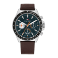 De Tommy Hilfiger horloge Clark heeft een grijze wijzerplaat en een lederen bruine band.