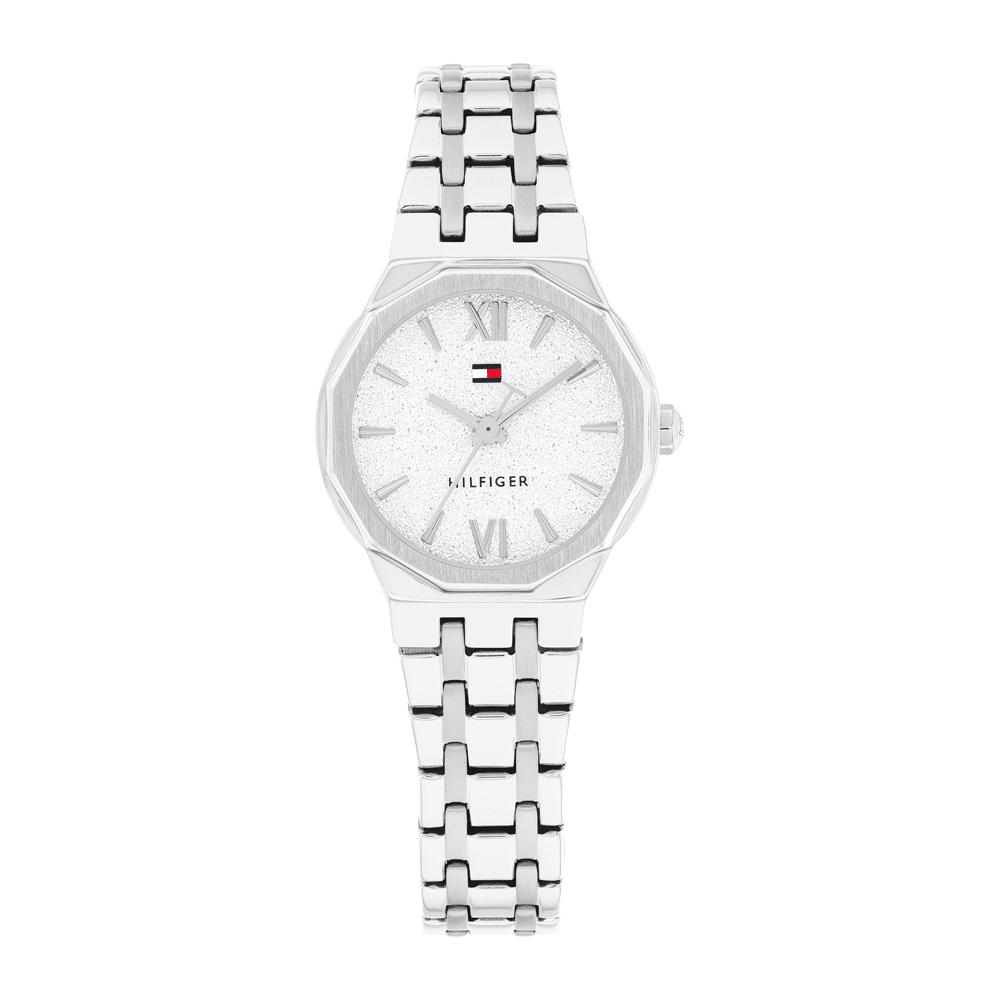 Tommy Hilfiger Horloge, Zilverkleurige Stalen Band, Zilverkleurige Wijzerplaat, Stalen Kast, 25Mm, 3 Atm