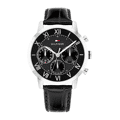 De Tommy Hilfiger horloge Oxford heeft een zwarte wijzerplaat en een lederen zwarte band.