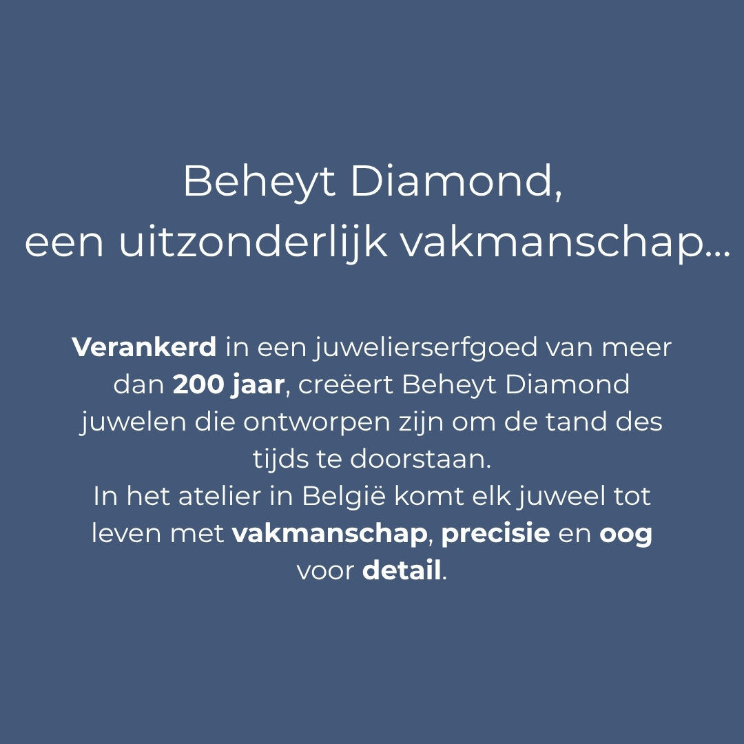 Sommige creaties kunnen worden gepersonaliseerd volgens de mogelijkheden die door Beheyt Diamond worden aangeboden. In de winkel helpen wij u om uw wens duidelijk te formuleren en de passende opties te identificeren.