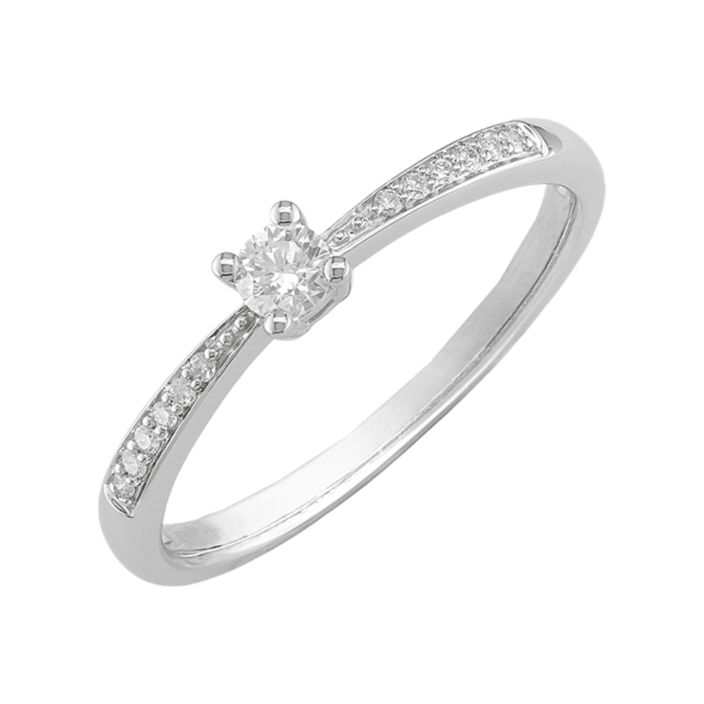Verlovingsring - Versato Goud 18 Karaat Gouden Ring Met 1 Natuur Diamant 0.11ct En 12 Natuur Diamanten 0.04ct - J&A6569/W/B015