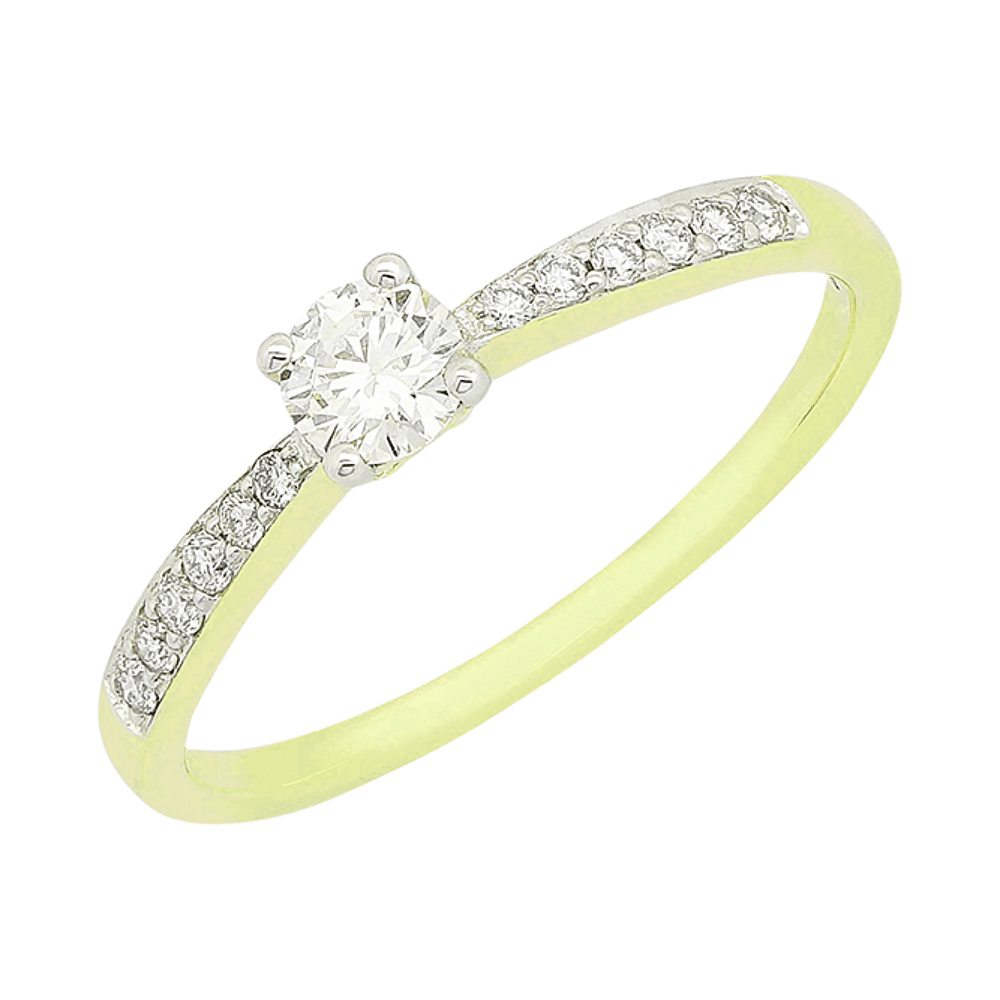 Verlovingsring - Versato Goud 18 Karaat Gouden Ring Met 1 Natuur Diamant 0.21ct En 12 Natuur Diamanten 0.11ct - J&A331/B/B030