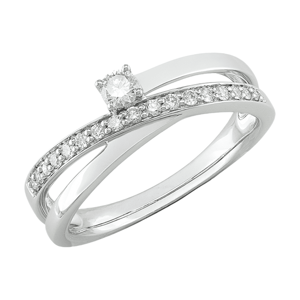Verlovingsring - Versato Goud 18 Karaat Gouden Ring Met 18 Natuur Diamanten 0.21ct - J&A6579/W/B020