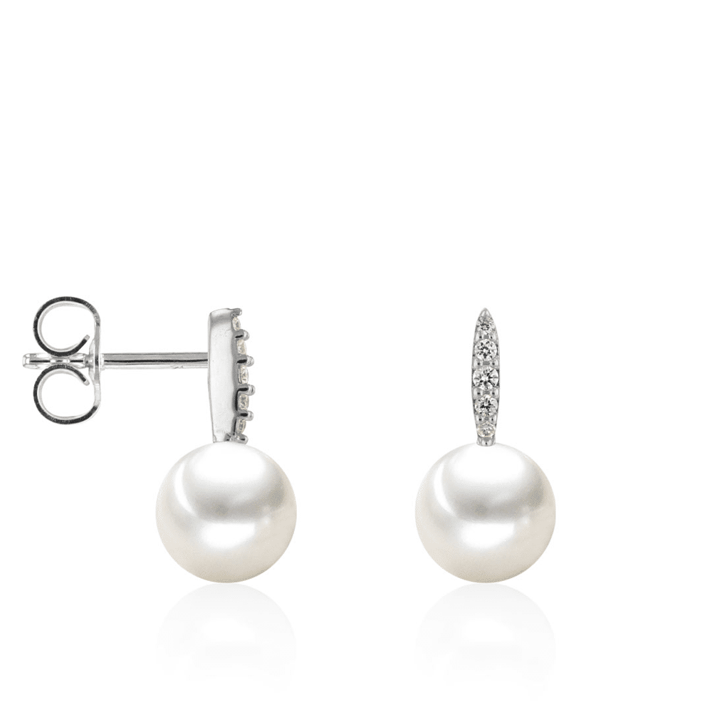 Oorbellen - Versato Goud 18 Karaat Oorbel Met 7-7,5mm Zoetwaterparels En 0,06Ct. Natuurlijke Diamanten 312.1606